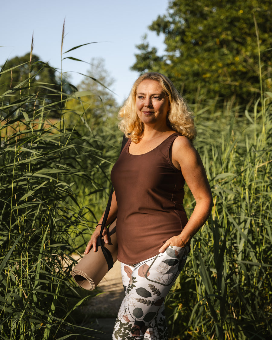Smørblød og behagelig top i strækbart materiale, der tilpasser sig kroppen og giver en perfekt pasform uanset størrelse. Let taljeret design, der går lidt længere ned foran og bagpå.